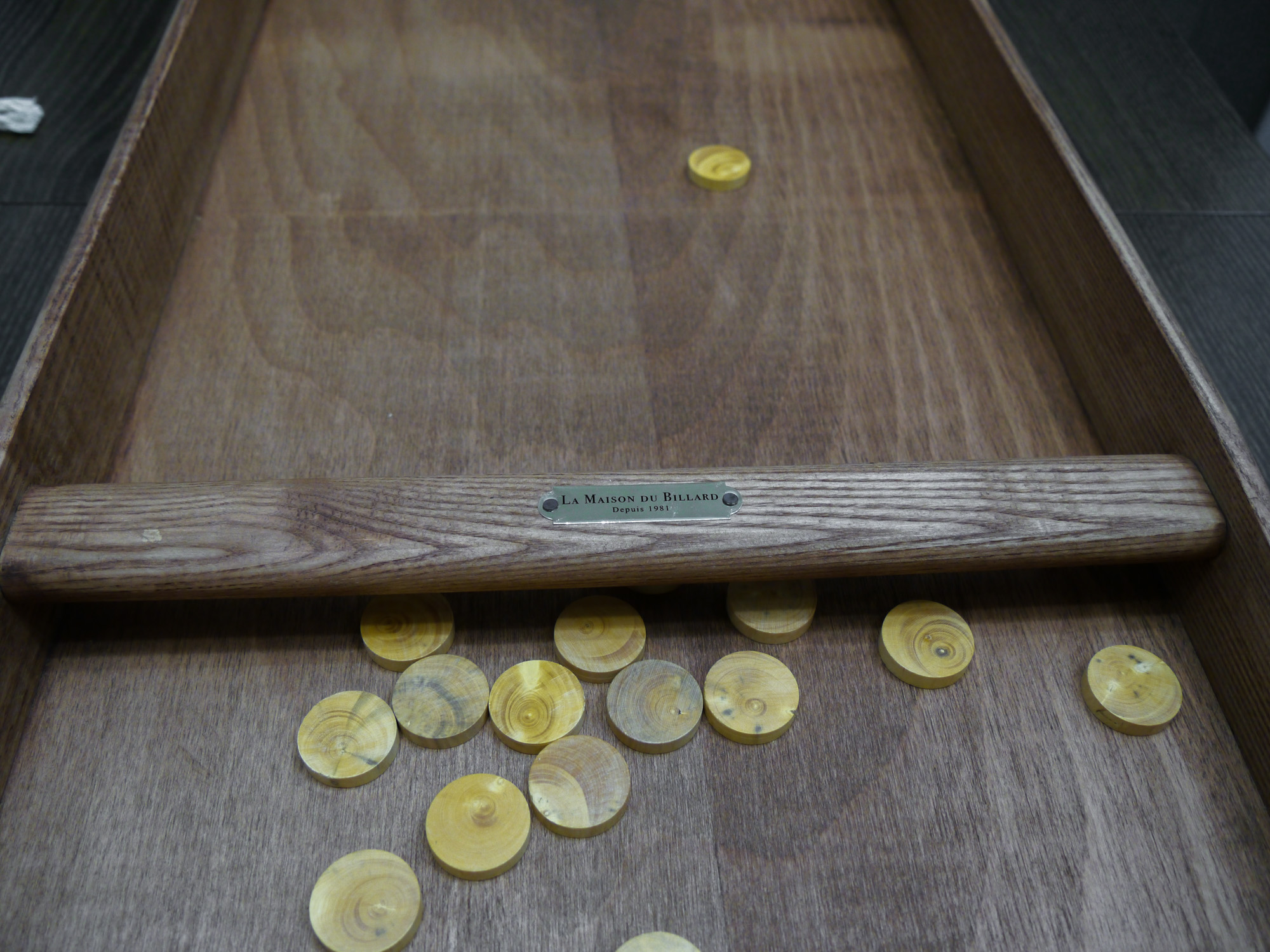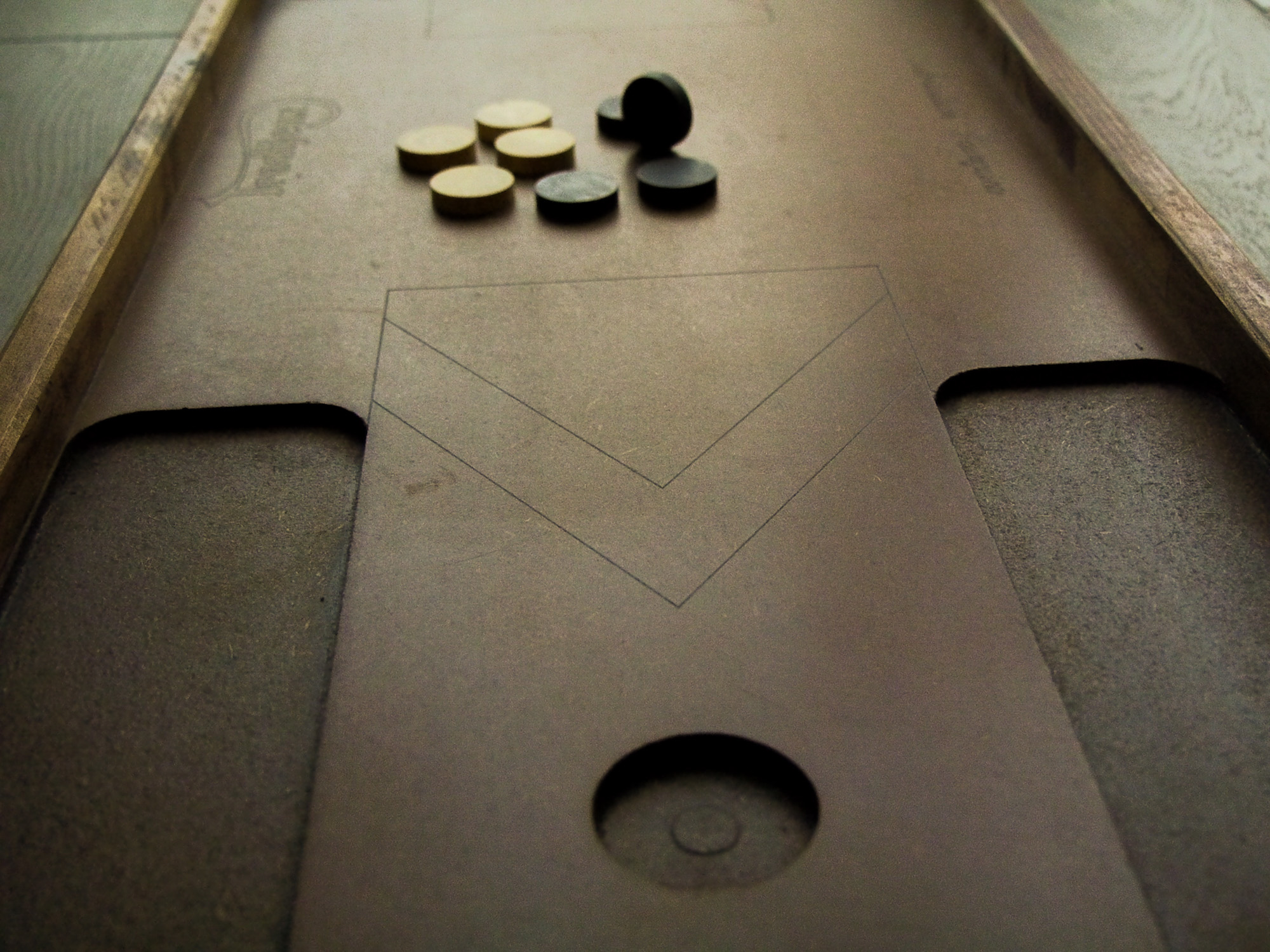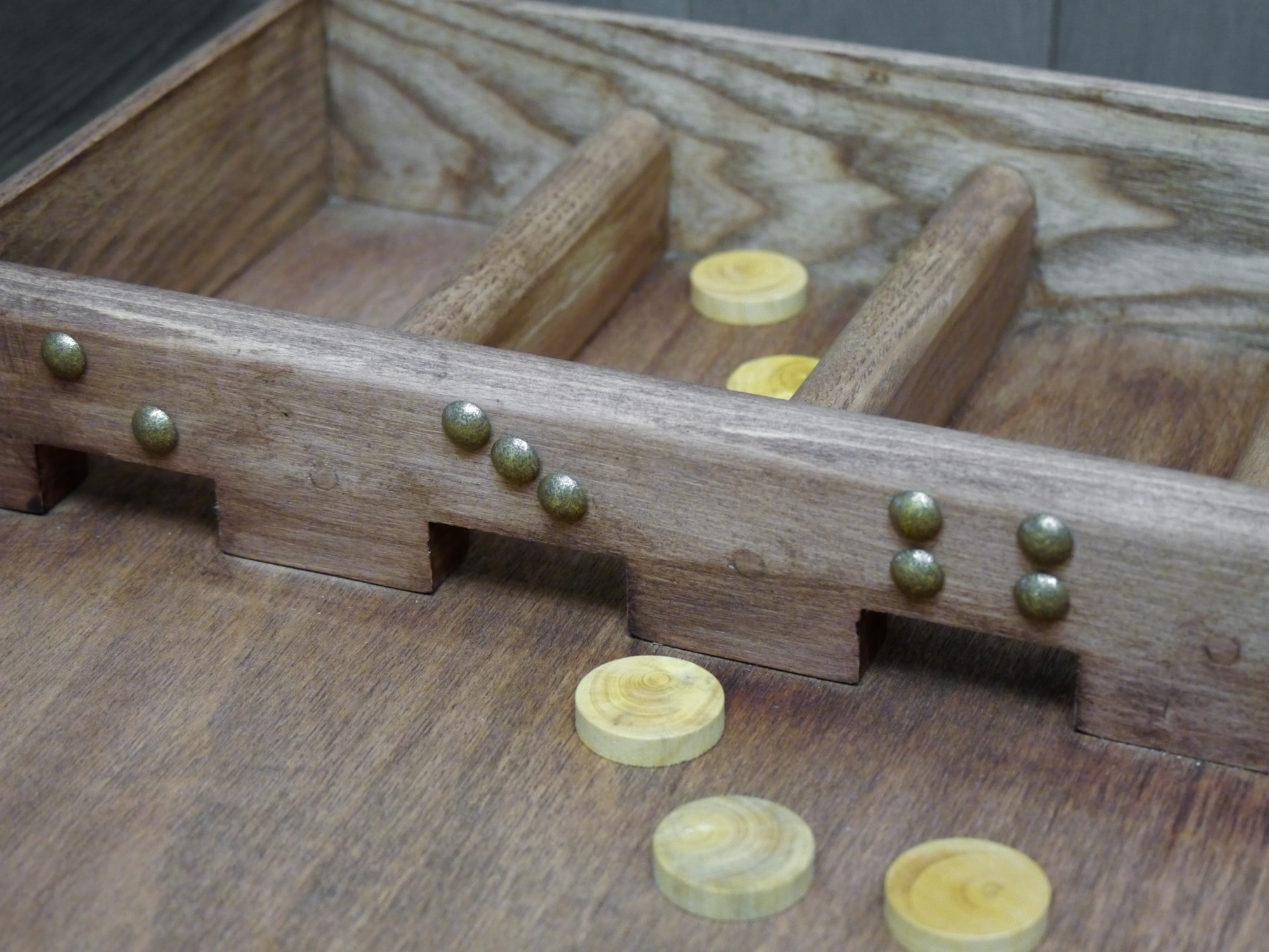 Autentyczna replika gry z XV wieku. Pchaj krążki do czterech komór i zbieraj punkty.