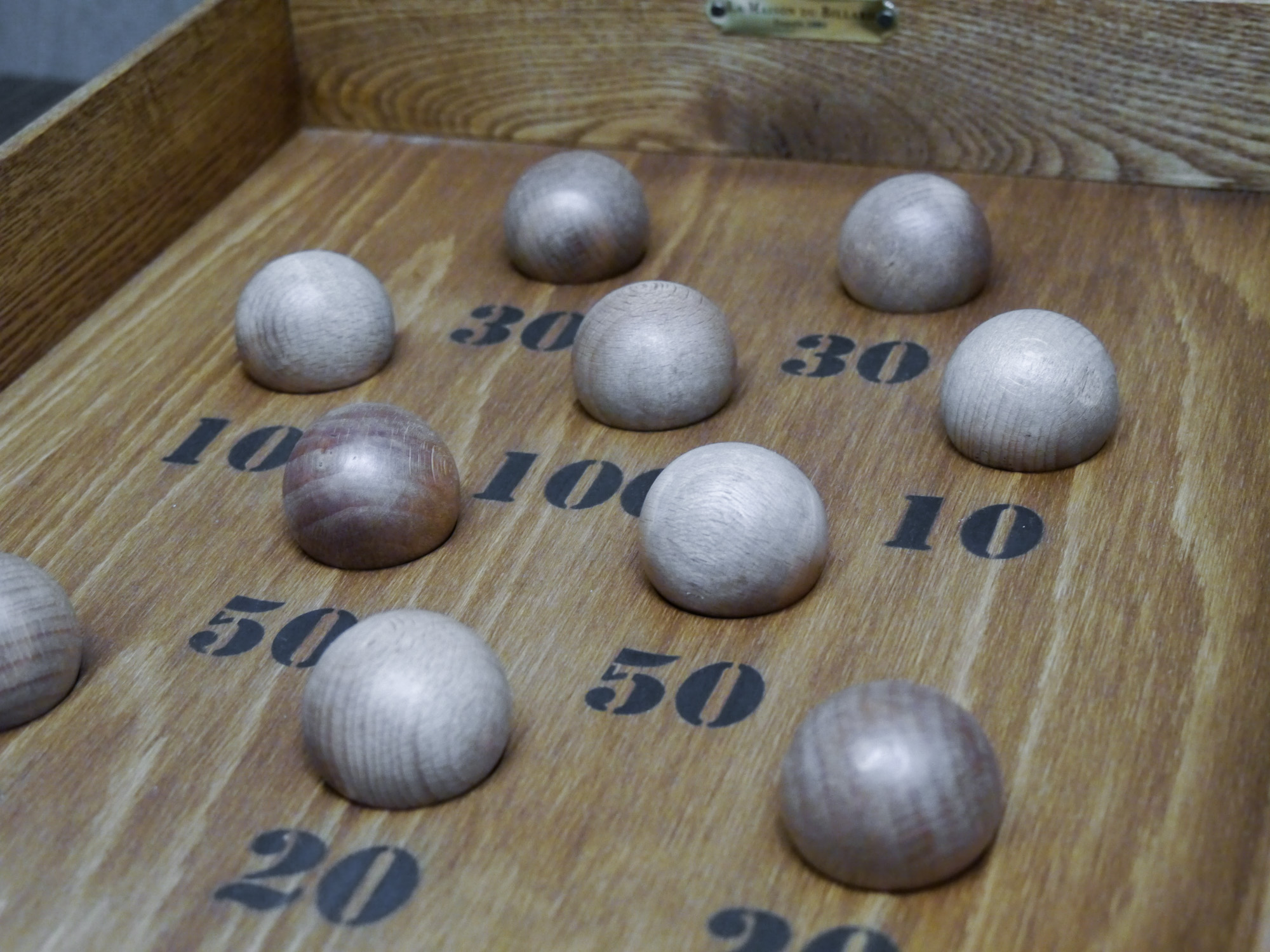 Gra z jarmarków i kasyn lat 30. Rzucaj kulami do ponumerowanych otworów i zbieraj punkty.