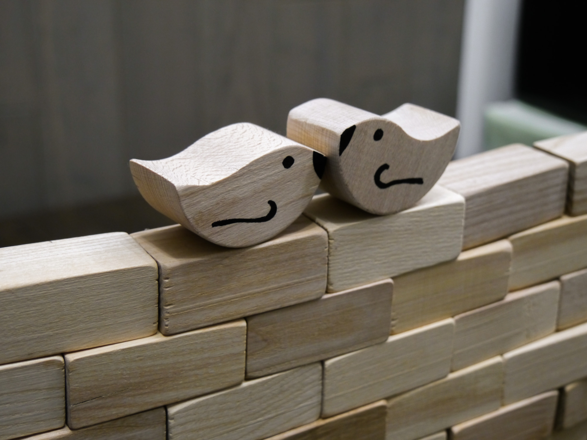 Gigantyczna gra zręcznościowa, wyjmuj cegły z muru nie przewracając ptaków.